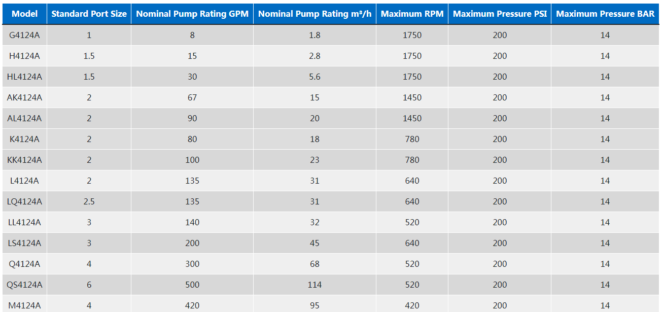 4124A系列™ 內(nèi)部齒輪泵是粘合劑、涂料和油墨、聚合物等的理想解決方案,因?yàn)橛袕V泛的可用設(shè)計(jì)和其他選擇。它可以處理0-500 GPM(1-114 m³/h)的流量。